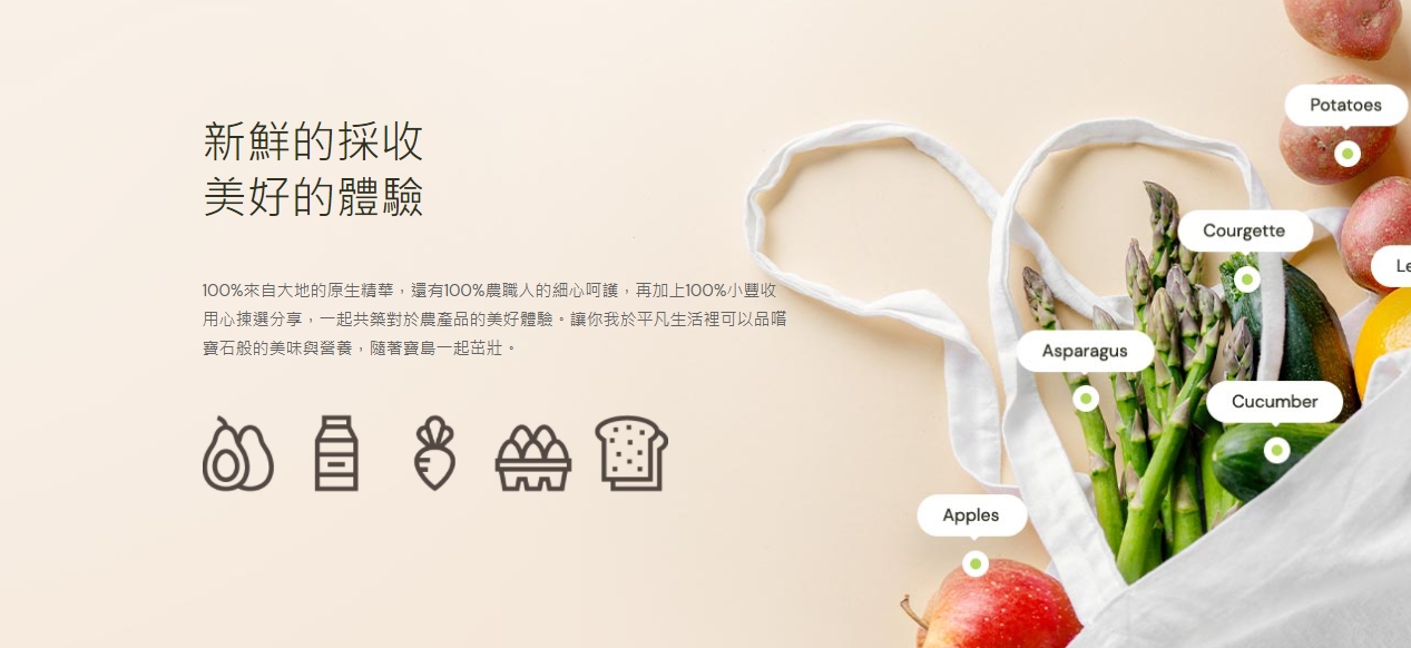 台灣土地的豐饒與多樣性,農職人與小豐收的合作下,打造出具有國際實力的高品質能產品,值得您來體驗。